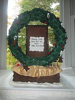 Wooden shish kabob skewers were used to secure the wreath to the other two styrofoam.
