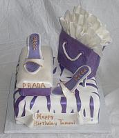 Shoe, Shoebox, Shopping Bag, Zebra striped Purple and White Birthday Cake
